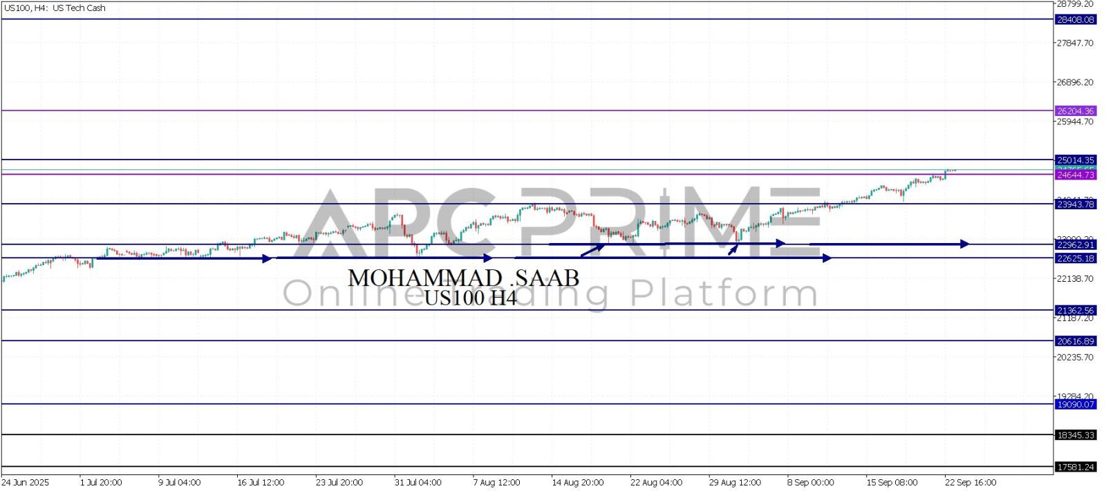 المنطقة الأهم (24644) ثبات السعر أعلى المنطقة الأهم يتجه السعر إلى منطقة المقاومة (25014) احتمالية الارتداد منها ممكنة ولكن باختراقها وإغلاق أعلى بشمعة أربع ساعات يتجه السعر إلى منطقة المقاومة (26204)