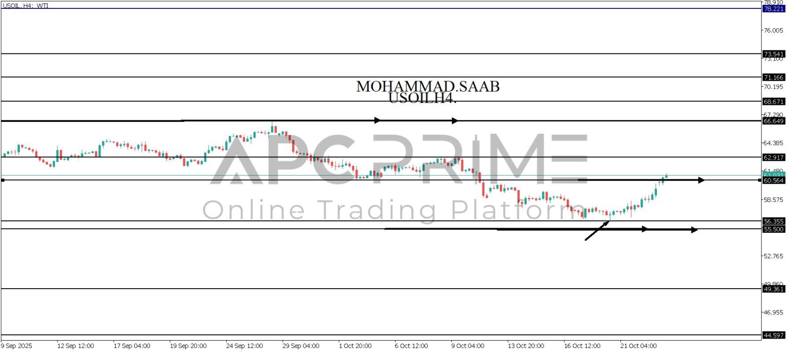 المنطقة الأهم (60.564) احتمالية الارتداد منها ممكنة ولكن بكسرها وإغلاق أسفل بشمعة أربع ساعات يتجه السعر إلى منطقة الدعم (56.355) احتمالية الارتداد منها ممكنة ولكن بكسرها وإغلاق أسفل بشمعة أربع ساعات يتجه السعر إلى منطقة الدعم (55.500)