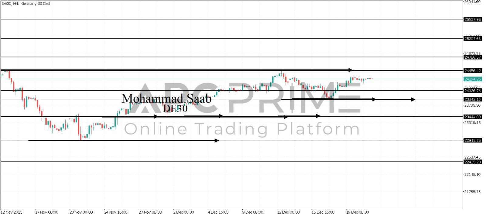 المنطقة الأهم (24036) ثبات السعر أعلى المنطقة الأهم يتجه السعر إلى منطقة المقاومة (24486) احتمالية الارتداد منها ممكنة ولكن باختراقها وإغلاق أعلى بشمعة أربع ساعات يتجه السعر إلى منطقة المقاومة (24786)