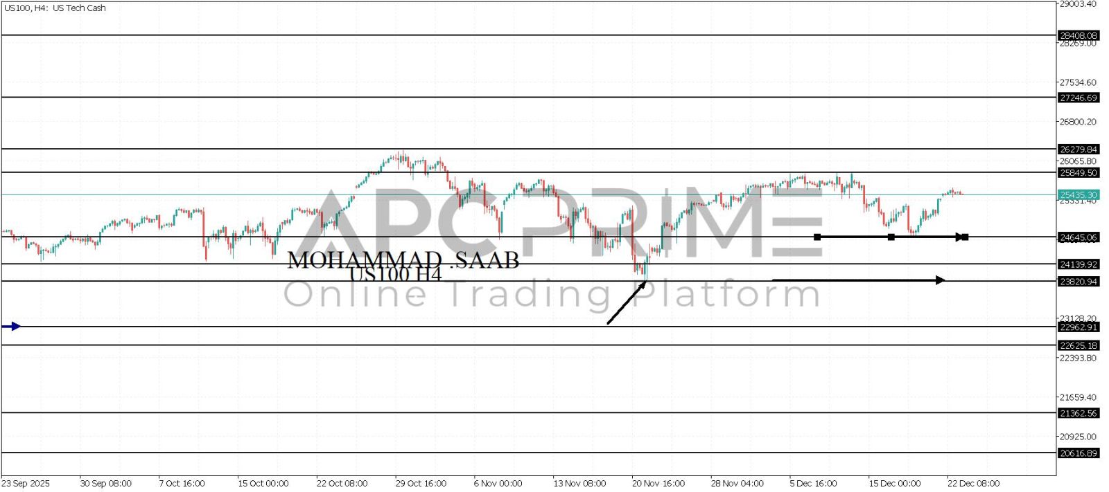 المنطقة الأهم (24645) ثبات السعر أعلى المنطقة الأهم يتجه السعر إلى منطقة المقاومة (25849) احتمالية الارتداد منها ممكنة ولكن باختراقها وإغلاق أعلى بشمعة أربع ساعات يتجه السعر إلى منطقة المقاومة (26279)