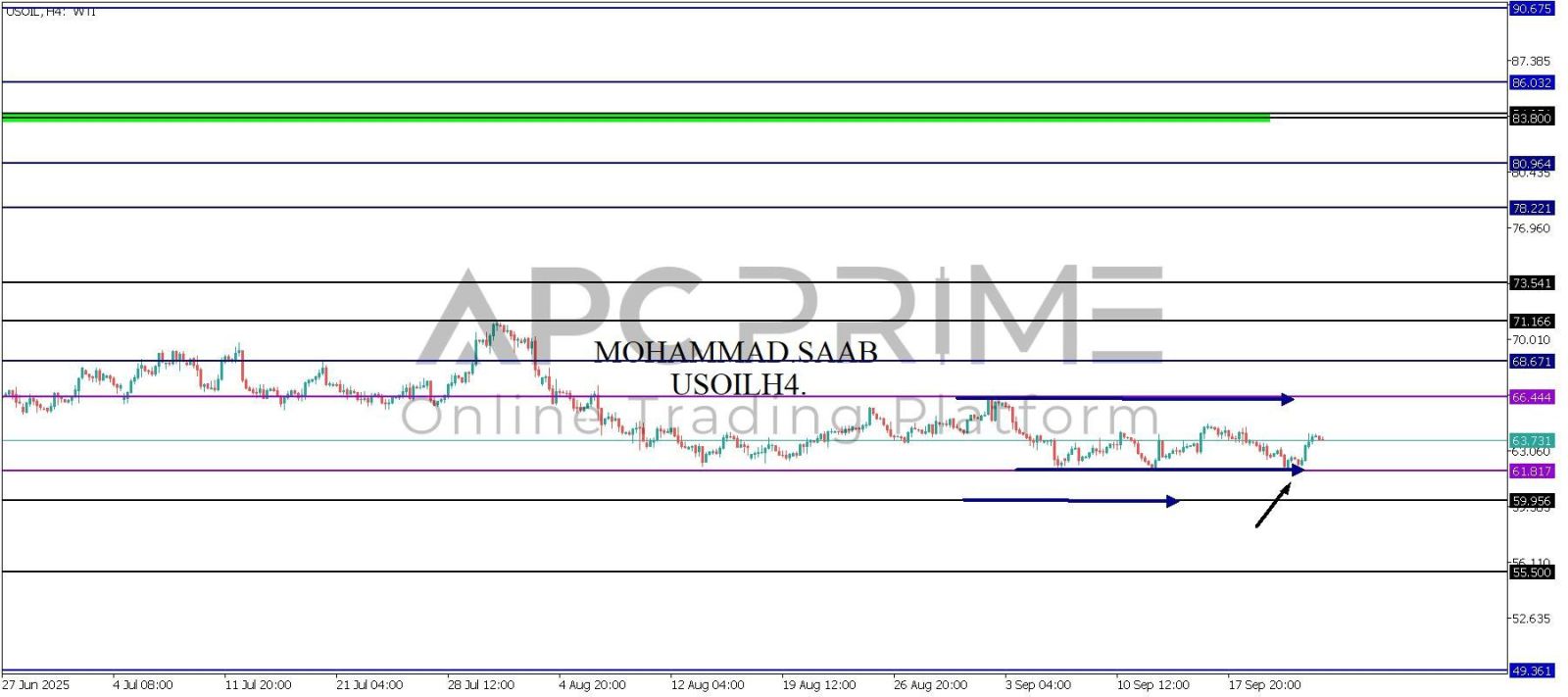 المنطقة الأهم (61.817) احتمالية الارتداد منها ممكنة ولكن بكسرها وإغلاق أسفل بشمعة أربع ساعات يتجه السعر إلى منطقة الدعم (59.956) احتمالية الارتداد منها ممكنة ولكن بكسرها وإغلاق أسفل بشمعة أربع ساعات يتجه السعر إلى منطقة الدعم (55.500)