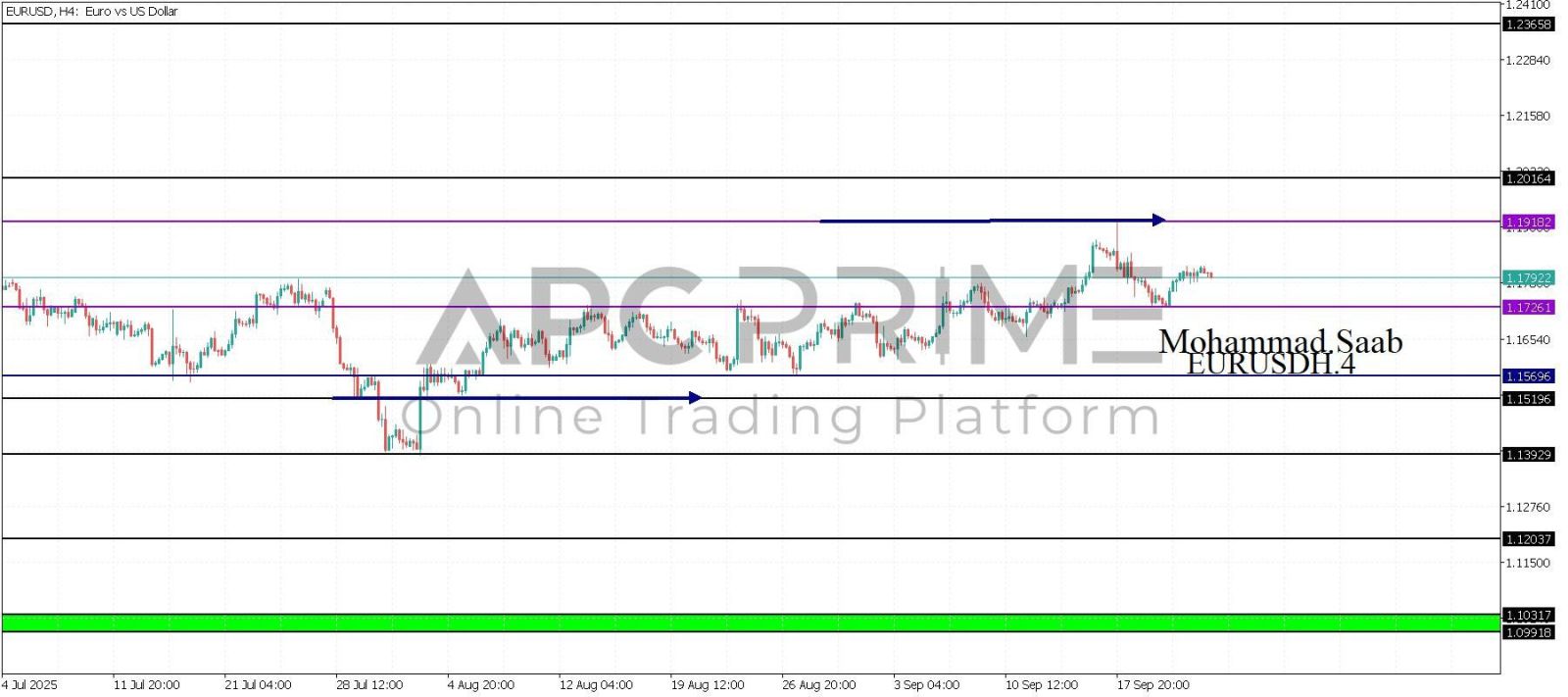 المنطقة الأهم (1.19182) ثبات السعر أسفل المنطقة الأهم يتجه السعر إلى منطقة الدعم (1.17261) احتمالية الارتداد منها ممكنة ولكن بكسرها وإغلاق أسفل بشمعة أربع ساعات يتجه السعر إلى منطقة الدعم (1.15696)