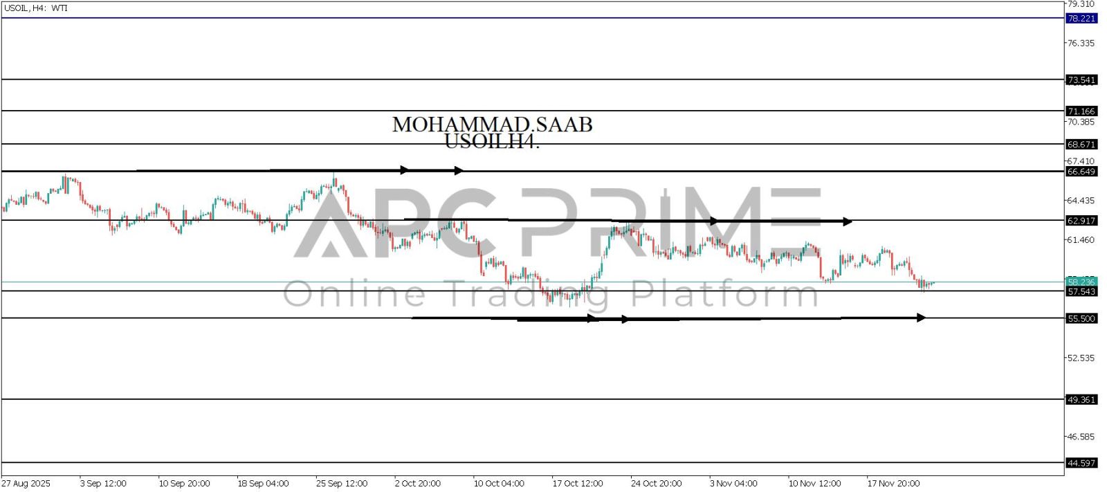 المنطقة الأهم (57.543) احتمالية الارتداد منها ممكنة ولكن بكسرها وإغلاق أسفل بشمعة أربع ساعات يتجه السعر إلى منطقة الدعم (55.500) احتمالية الارتداد منها ممكنة ولكن بكسرها وإغلاق أسفل بشمعة أربع ساعات يتجه السعر إلى منطقة الدعم (49.361)