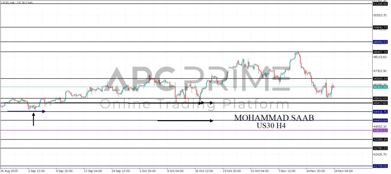 المنطقة الأهم (45692) احتمالية الارتداد منها ممكنة ولكن بكسرها وإغلاق أسفل بشمعة أربع ساعات يتجه السعر إلى منطقة الدعم (45417) احتمالية الارتداد منها ممكنة ولكن بكسرها وإغلاق أسفل بشمعة أربع ساعات يتجه السعر إلى منطقة الدعم (44916)