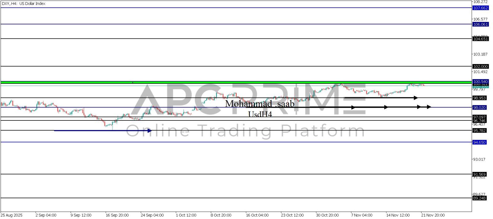 المنطقة الأهم (100.322-100.540 (احتمالية الارتداد منها ممكنة ولكن باختراقها وإغلاق أعلى بشمعة أربع ساعات يتجه السعر إلى منطقة المقاومة (102.000) احتمالية الارتداد منها ممكنة ولكن باختراقها وإغلاق أعلى بشمعة أربع ساعات يتجه السعر إلى منطقة المقاومة (104.651)