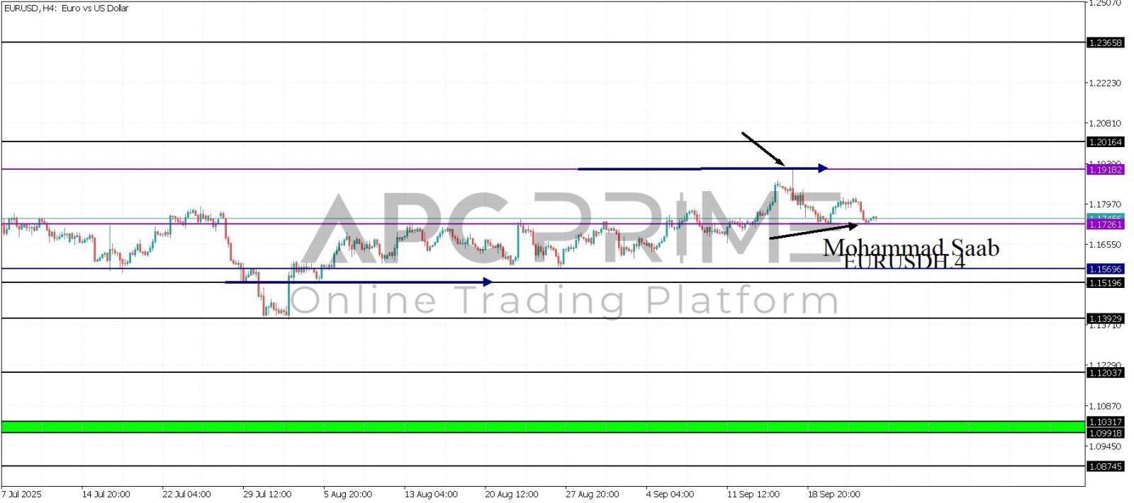 المنطقة الأهم (1.19182) ثبات السعر أسفل المنطقة الأهم يتجه السعر إلى منطقة الدعم (1.17261) احتمالية الارتداد منها ممكنة ولكن بكسرها وإغلاق أسفل بشمعة أربع ساعات يتجه السعر إلى منطقة الدعم (1.15696)