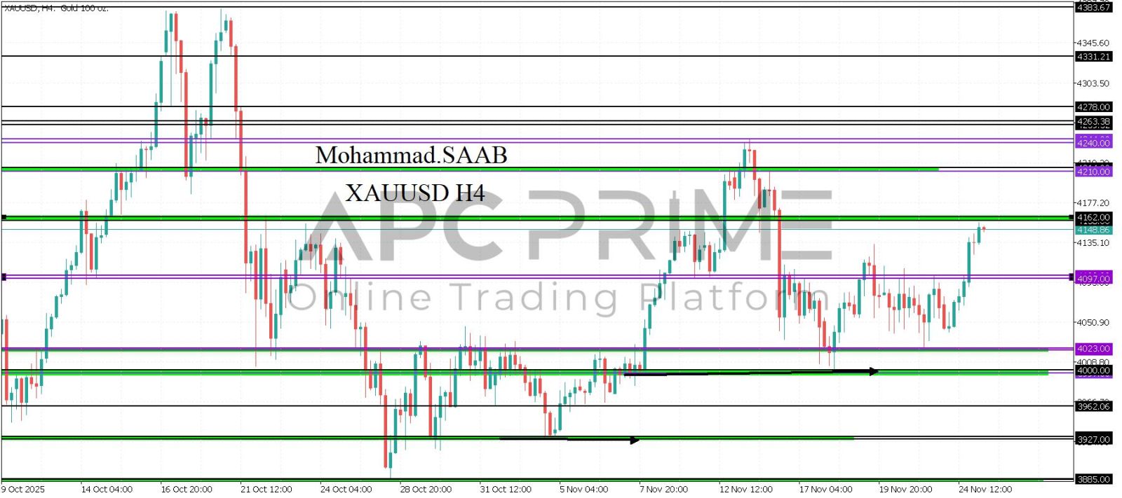 المنطقة الأهم (4162-4150) احتمالية الارتداد منها ممكنة ولكن باختراقها وإغلاق أعلى بشمعة أربع ساعات يتجه السعر إلى منطقة المقاومة (4210-4214) احتمالية الارتداد منها ممكنة ولكن باختراقها وإغلاق أعلى بشمعة أربع ساعات يتجه السعر إلى منطقة المقاومة (4240-4244)