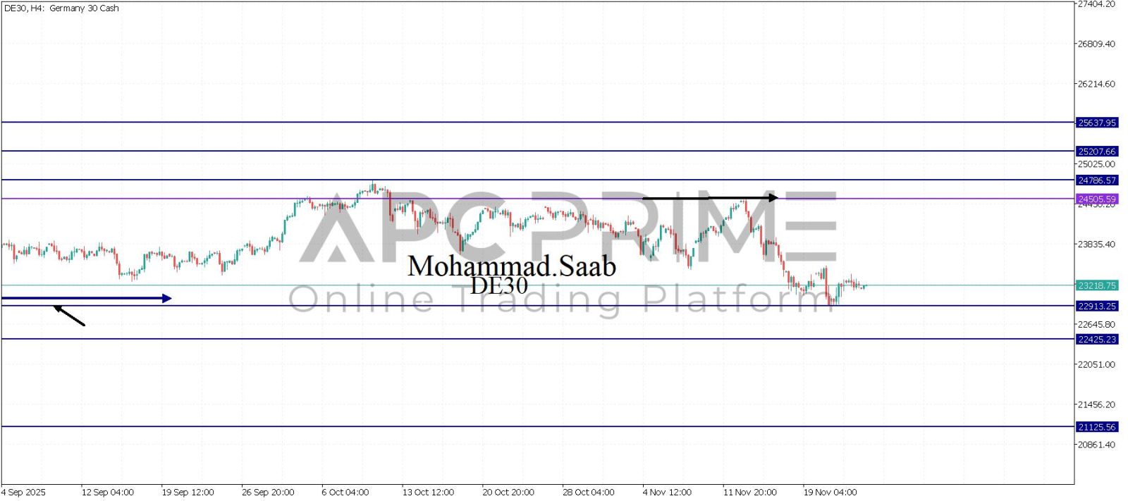 المنطقة الأهم (22913) ثبات السعر أعلى المنطقة الأهم يتجه السعر إلى منطقة المقاومة (24505) احتمالية الارتداد منها ممكنة ولكن باختراقها وإغلاق أعلى بشمعة أربع ساعات يتجه السعر إلى منطقة المقاومة (24786)