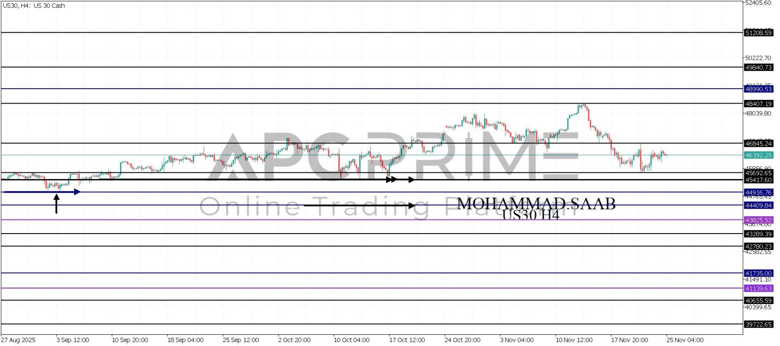 المنطقة الأهم (45692) احتمالية الارتداد منها ممكنة ولكن بكسرها وإغلاق أسفل بشمعة أربع ساعات يتجه السعر إلى منطقة الدعم (45417) احتمالية الارتداد منها ممكنة ولكن بكسرها وإغلاق أسفل بشمعة أربع ساعات يتجه السعر إلى منطقة الدعم (44916)