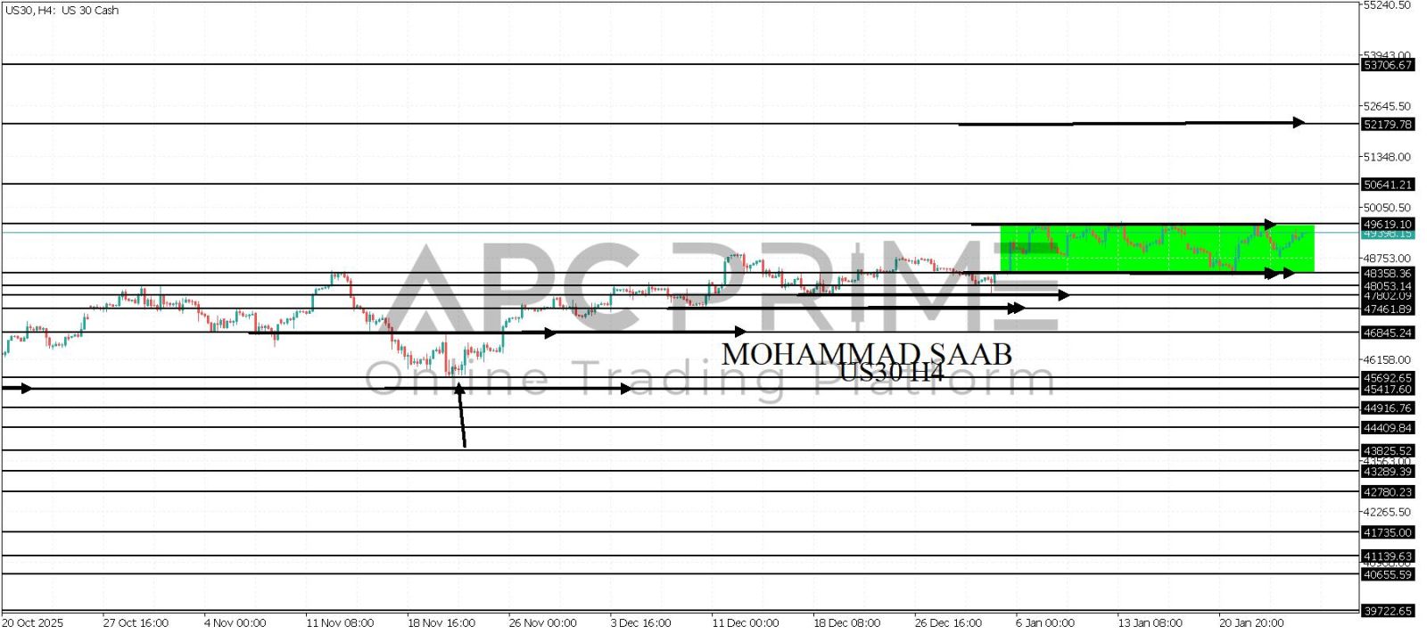 المنطقة الأهم (49619) احتمالية الارتداد منها ممكنة ولكن بكسرها وإغلاق أسفل بشمعة أربع ساعات يتجه السعر إلى منطقة الدعم (48358) احتمالية الارتداد منها ممكنة ولكن بكسرها وإغلاق أسفل بشمعة أربع ساعات يتجه السعر إلى منطقة الدعم (48053)