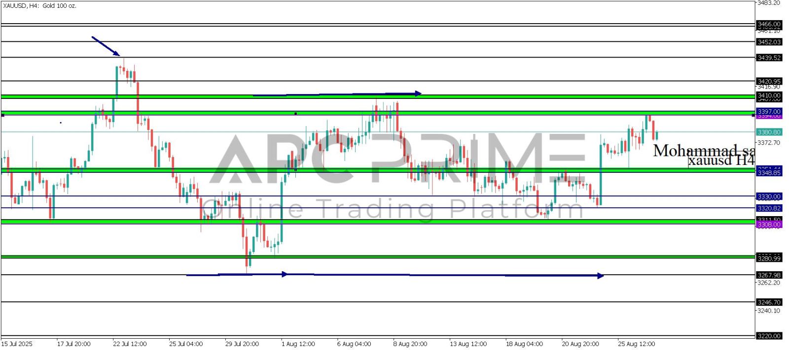 المنطقة الأهم (3397-3394) احتمالية الارتداد منها ممكنة ولكن باختراقها وإغلاق أعلى بشمعة أربع ساعات يتجه السعر إلى منطقة المقاومة (3410-3407) احتمالية الارتداد منها ممكنة ولكن باختراقها وإغلاق أعلى بشمعة أربع ساعات يتجه السعر إلى منطقة المقاومة (3420)