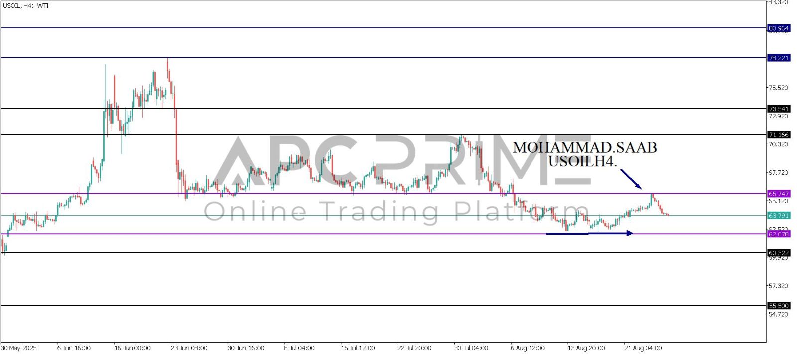 المنطقة الأهم (65.747) ثبات السعر أسفل المنطقة الأهم يتجه السعر إلى منطقة الدعم (62.078) احتمالية الارتداد منها ممكنة ولكن بكسرها وإغلاق أسفل بشمعة أربع ساعات يتجه السعر إلى منطقة الدعم (60.322)