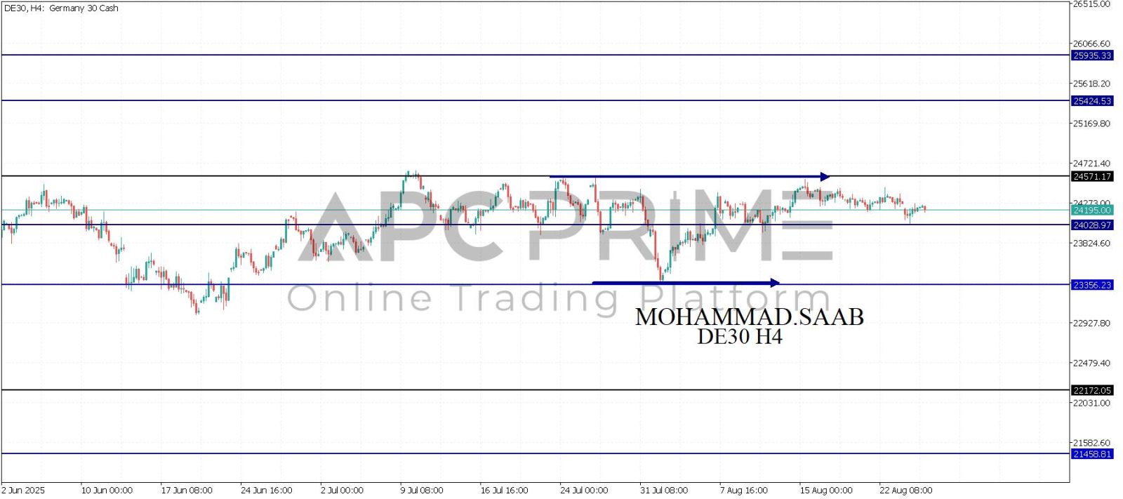 المنطقة الأهم (24085) ثبات السعر أعلى المنطقة الأهم يتجه السعر إلى منطقة المقاومة (24571) احتمالية الارتداد منها ممكنة ولكن باختراقها وإغلاق أعلى بشمعة أربع ساعات يتجه السعر إلى منطقة المقاومة (25424)
