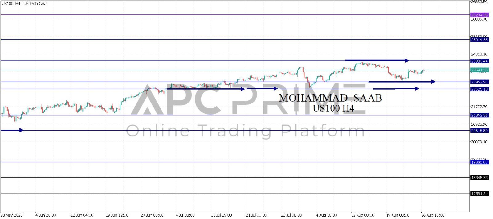 المنطقة الأهم (22962) احتمالية الارتداد منها ممكنة ولكن بكسرها وإغلاق أسفل بشمعة أربع ساعات يتجه السعر إلى منطقة الدعم (22625) احتمالية الارتداد منها ممكنة ولكن بكسرها وإغلاق أسفل بشمعة أربع ساعات يتجه السعر إلى منطقة الدعم (21362)