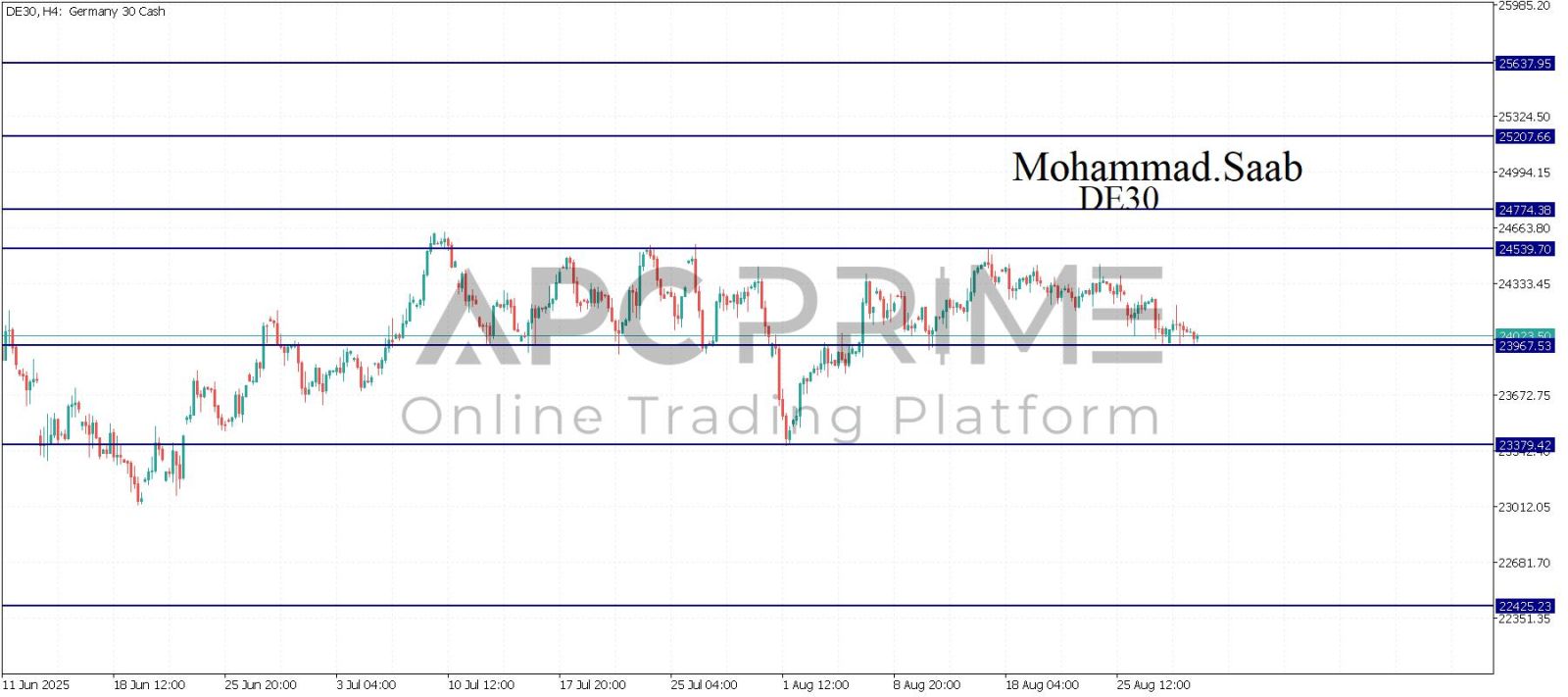 المنطقة الأهم (23967) ثبات السعر أعلى المنطقة الأهم يتجه السعر إلى منطقة المقاومة (24539) احتمالية الارتداد منها ممكنة ولكن باختراقها وإغلاق أعلى بشمعة أربع ساعات يتجه السعر إلى منطقة المقاومة (24774)