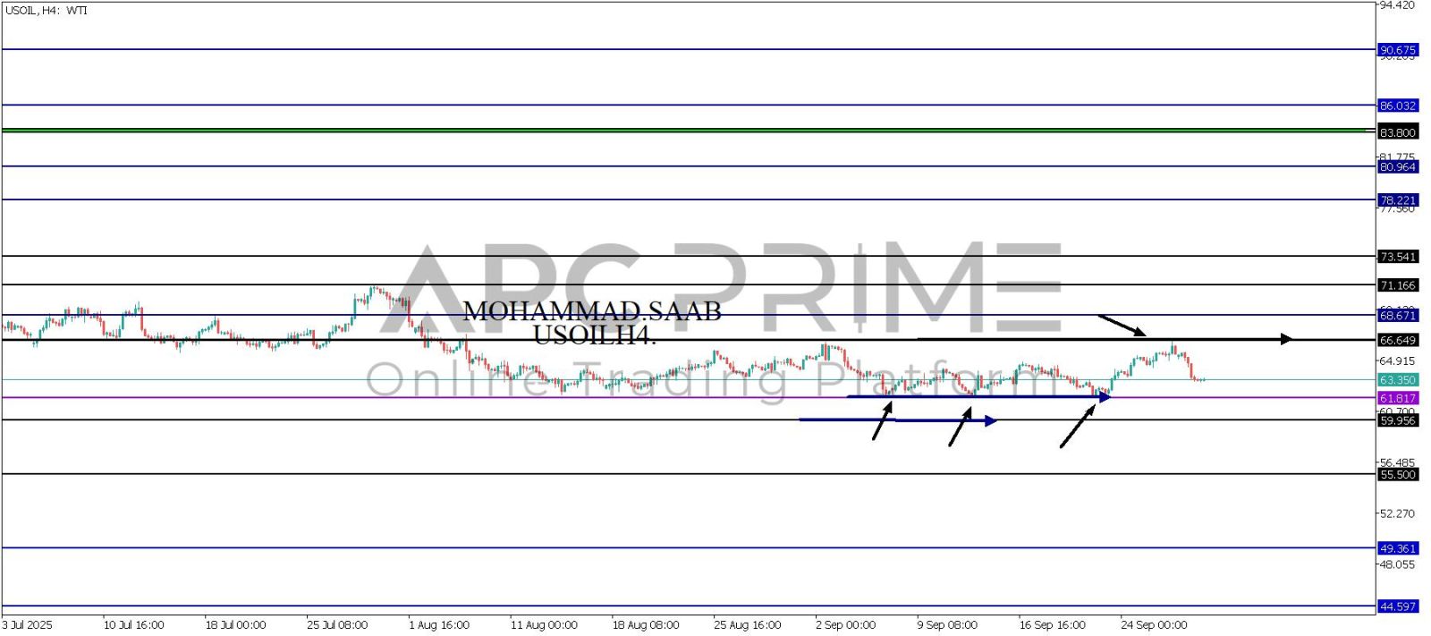 المنطقة الأهم (66.649) ثبات السعر أسفل المنطقة الأهم يتجه السعر إلى منطقة الدعم (61.817) احتمالية الارتداد منها ممكنة ولكن بكسرها وإغلاق أسفل بشمعة أربع ساعات يتجه السعر إلى منطقة الدعم (59.956)