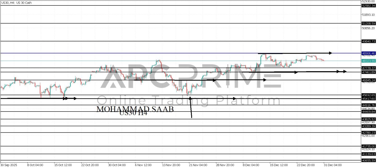 المنطقة الأهم (48906) احتمالية الارتداد منها ممكنة ولكن باختراقها وإغلاق أعلى بشمعة أربع ساعات يتجه السعر إلى منطقة المقاومة (49840) احتمالية الارتداد منها ممكنة ولكن باختراقها وإغلاق أعلى بشمعة أربع ساعات يتجه السعر إلى منطقة المقاومة (51208)